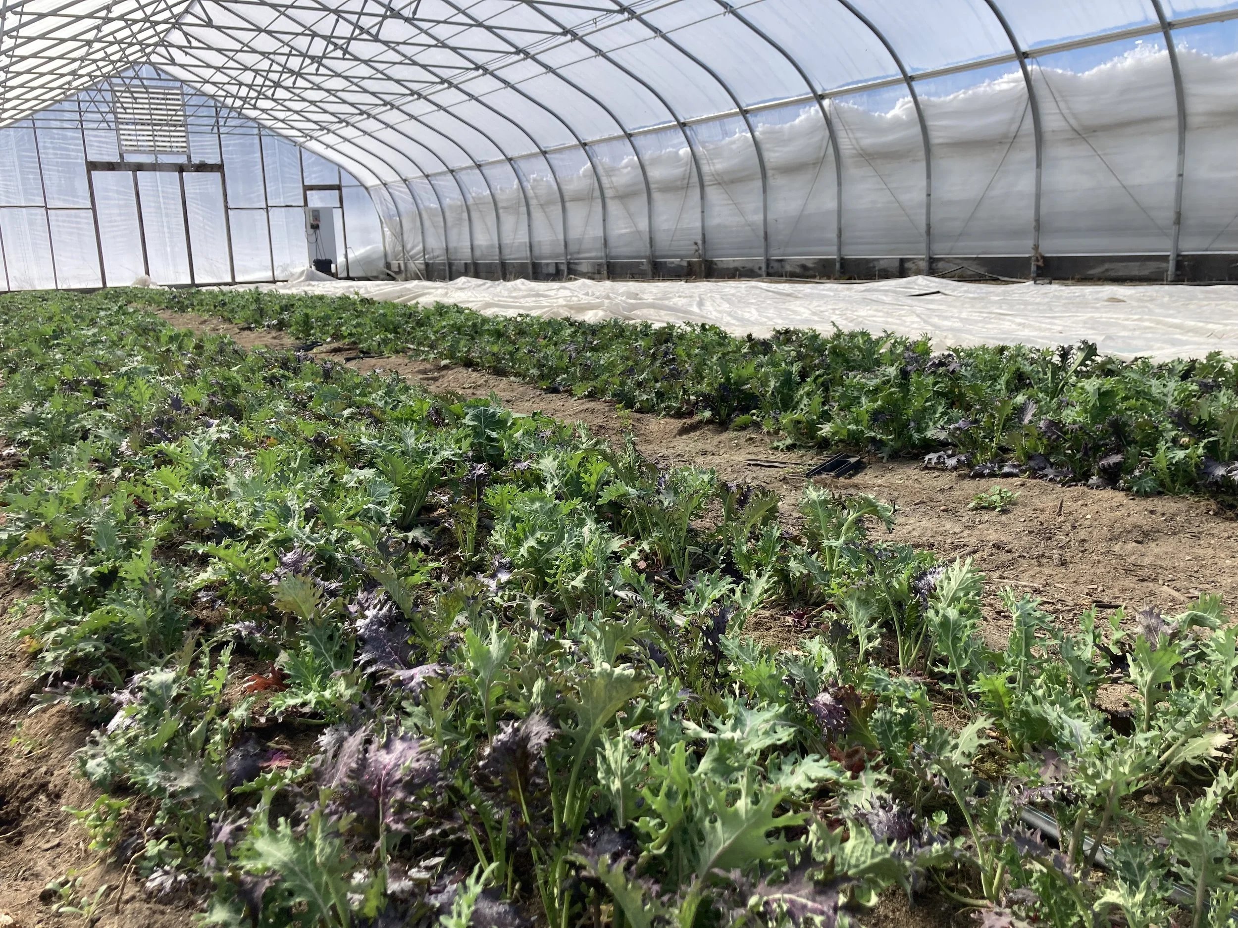 We are excited to open this Saturday from 10am-Noon for another winter pop-up sale! High tunnel-grown kale mix is the star of the show but we also have really nice abundant cabbage, limited high tunnel spinach, overwintered scallions, overwintered curly kale, and our very own hot sauce salsa verde and sauerkraut. In addition, we are bringing in certified organic carrots, beets, and shiitake mushrooms from nearby farms. We also have two new special dried treats: apple chips and dried shiitake mushrooms! See below for a complete list of what will be available. The sale will be in the greenhouse attached to the farm stand in-between racks of newly seeded trays. Luckily, it is predicted to be a relatively warm day because we will likely spill out into the farm stand since seedlings are taking up more of the greenhouse every day. Come by and celebrate almost-spring with us!