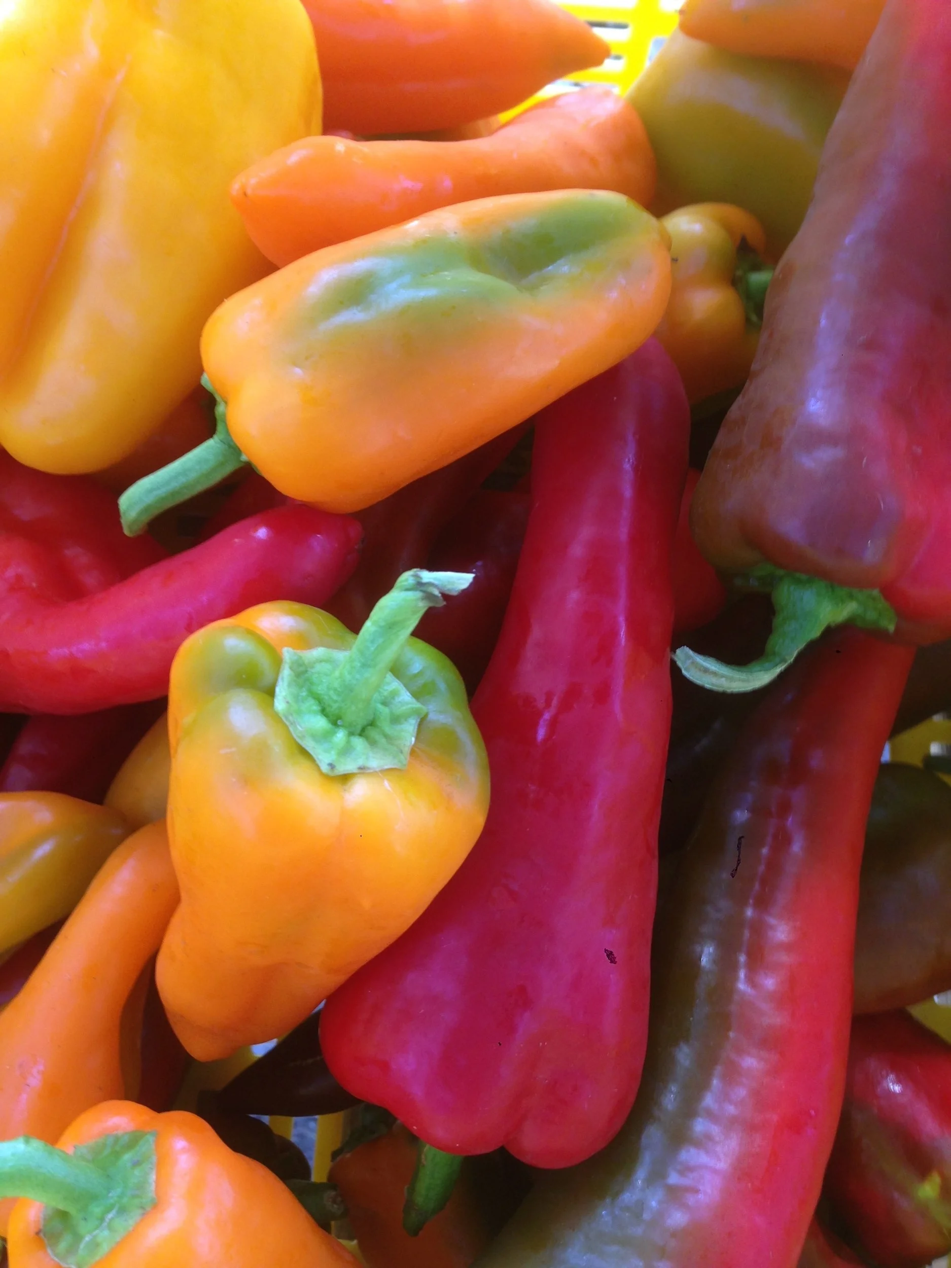 - Sweet Red, Yellow, Orange peppers- We grow 6 types of red yellow and orange peppers and we will have a variety available in the CSA from now until our first frost.