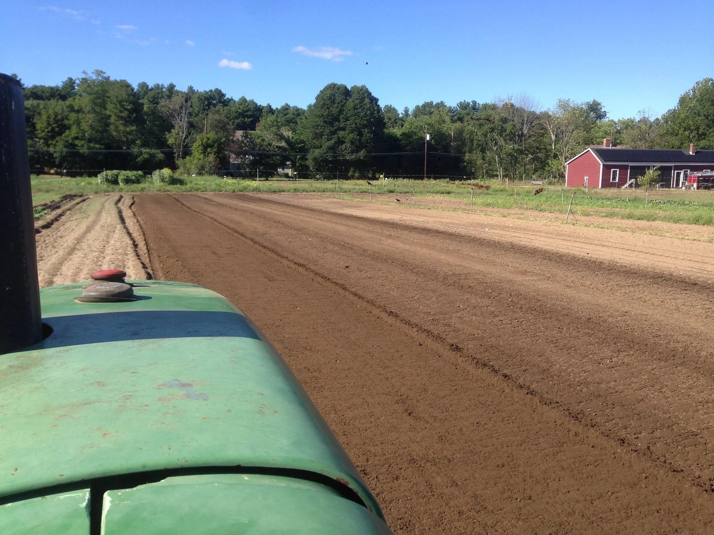 We are more than half way through our CSA season but that doesn't mean things are winding down! In most of our fields business continues as usual and we are still planting, weeding, and harvesting away. The greenhouse still has fall plantings of spinach and lettuce and we are working our way through the weeds in the fall roots to ensure a plentiful crop. In the flurry of activity of the farm in the height of summer we also make time to take care of the fields by planting cover crops in areas where we are done harvesting for the season. The window to plant certain cold sensitive cover crops closes with the fall frosts so the time to act is now. In order to plant the cover crop seed waiting in the barn we needed the recent rain to help us work in plant debris and provide the moisture needed for seed germination. Lise saw her opportunity between rain showersrecently and set out on the tractor to seed triticale and Austrian winter peas in 3 open areas. She timed it just right! These crops will provide cover for the field over the winter to prevent erosion as well as contribute organic matter and nutrients to the soil. While a cover cropped field doesn't always look impressive, it is one most important aspects of the farm. When we see cover crops germinating on the farm in August we see healthy soils and crops in the years to come!