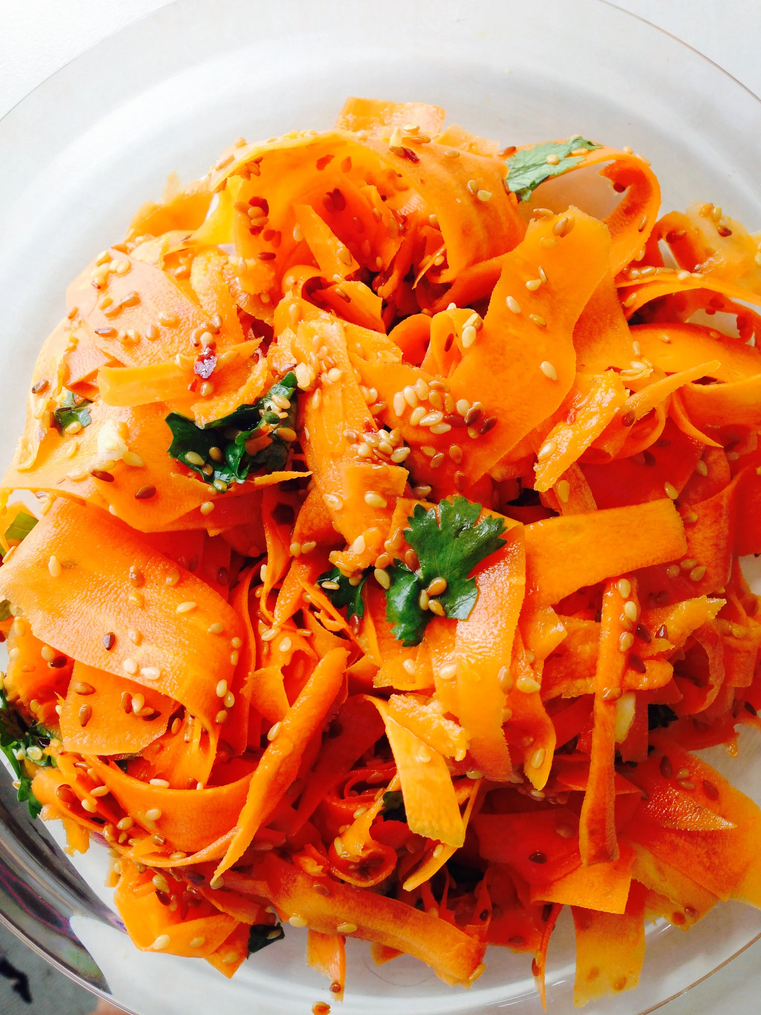1 1/2 pounds carrots, peeled lengthwise into thin ribbons