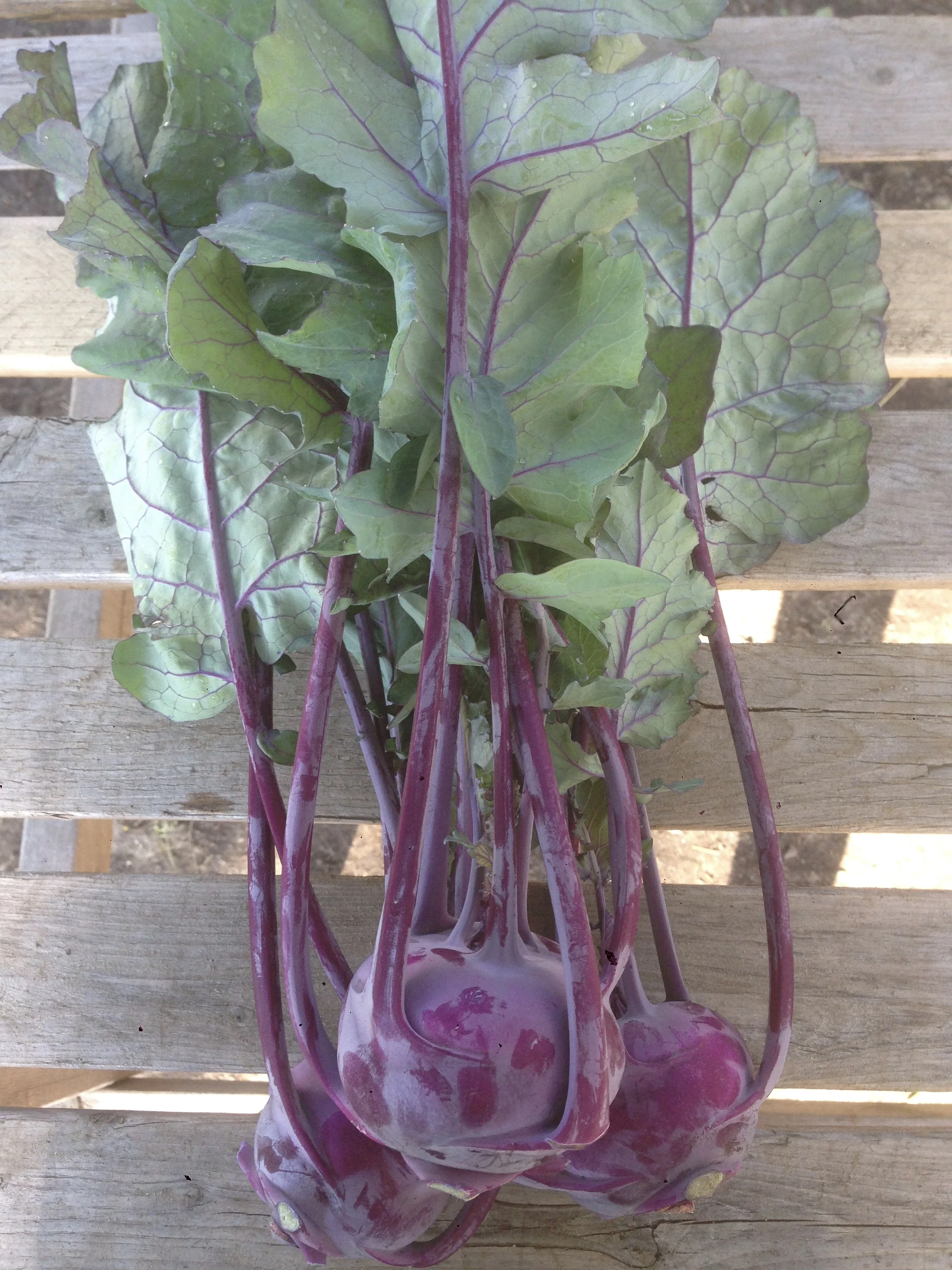 - Kohlrabi- These funny looking purple vegetables are a juicy and crunchy addition to salads with a mild flavor.