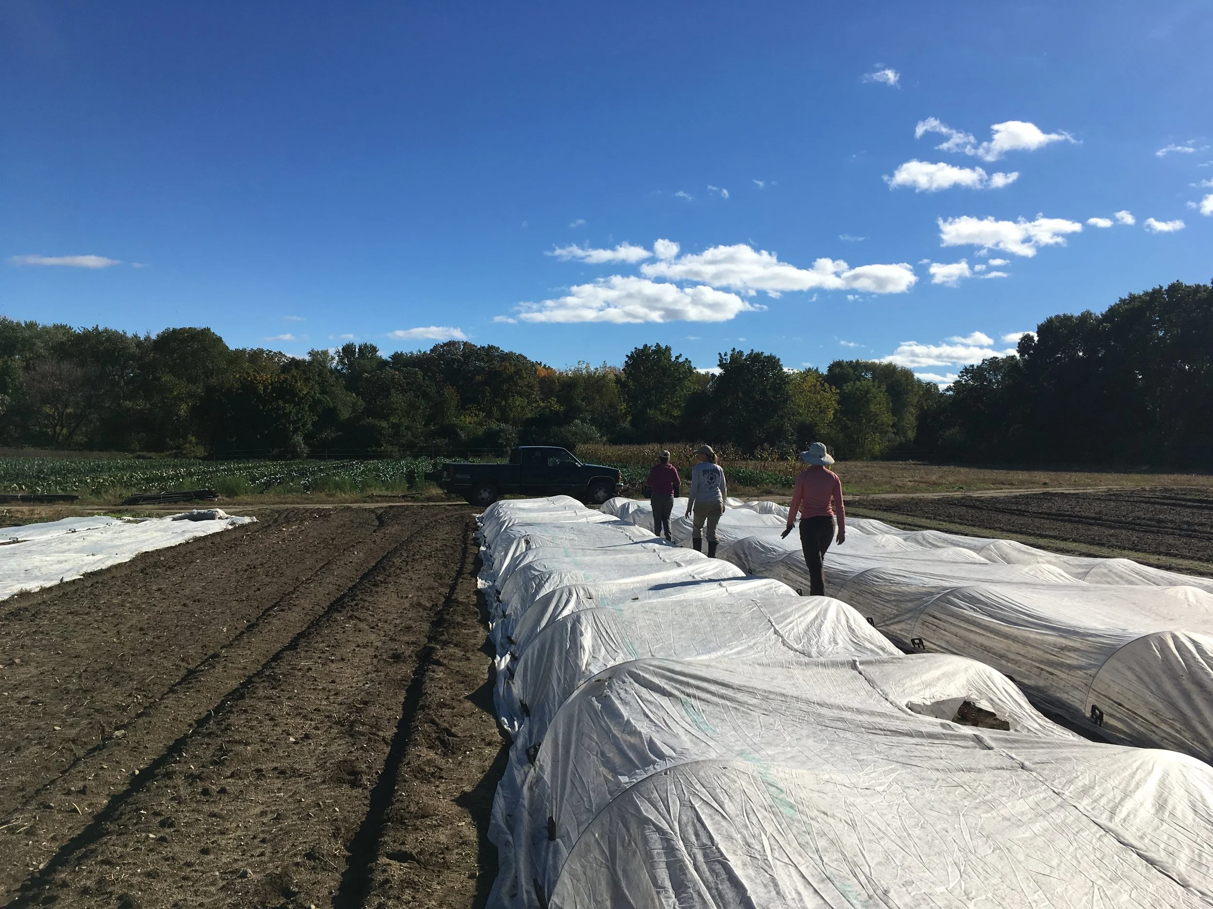 For those of you participating in the Late Fall CSA (October 25th - November 17th) or shopping in the store for the next two weeks, don’t worry! Though plant growth has slowed dramatically, there are still plenty of crops that can hold up in the cold for a few more weeks. In fact, cold weather improves the taste of many crops like carrots. Plants start converting starches to sugar in order to keep their cells from freezing, thus resulting in sweeter veggies! Many of the veggies we eat in the late fall (like sweet potatoes, onions, garlic and winter squash), have been harvested and cured earlier in the season, so they are already safely out of the field and in storage. More tender crops like lettuce are tucked under row cover to give an additional couple of degrees of protection from the increasingly cold nights. For those of you who aren’t part of the late fall CSA, we still have a great week planned, and the store will still be open with many late fall crops until October 27th. We are looking forward to seeing you all in the next couple of weeks before we take a breather and begin planning for next season!