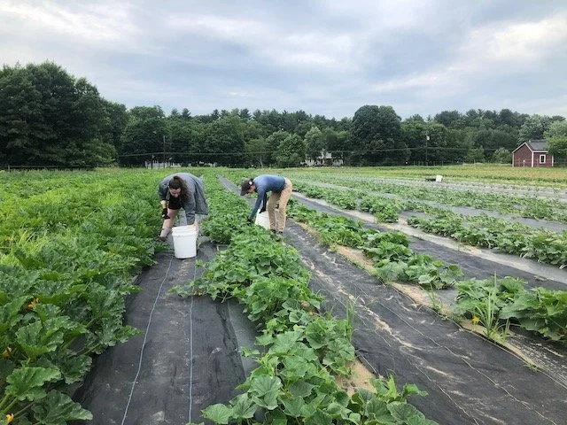 Less straightforward is getting irrigation to our fall crops (winter squash, brassicas, carrots and beets) across the street. Because of the distance from the well we would lose too much pressure to be able to effectively irrigate over there. We also simply wouldn’t have enough time in the week to irrigate all the fields that needed water, as we have a limited number of irrigation lines we can run at once. Therefore, we use a separate source for crops across the street - the Assabet River. This involves getting a pump, filter and intake line set up at the river, as well as threading an irrigation line under the road. Once we can get water over there, getting our drip lines hooked up and our overhead lines laid out is the same process as what we do with crops irrigated from our well. However, this set-up is time consuming and comes at a time when we are already extremely busy with weed control and harvesting (not to mention we still have more planting and seeding, as well as potato beetle control and trellising in the fields and high tunnels)! It feels like a critical week - if we aren’t able to keep up with irrigation and weed control we could see the effects later this summer. We are maintaining optimism, though - it’s been a strong start in terms of harvests, and we are determined to keep that streak going for the rest of the season!