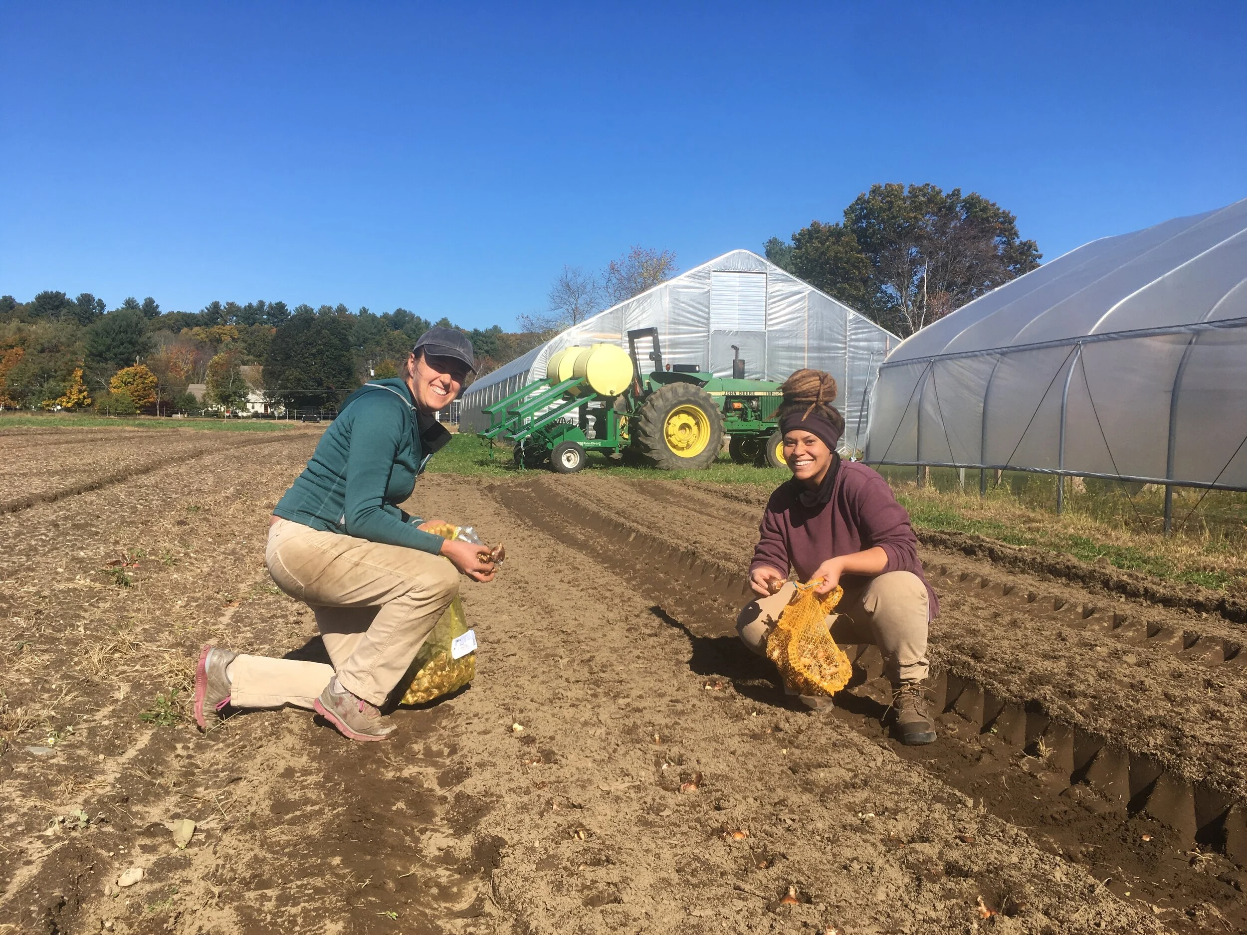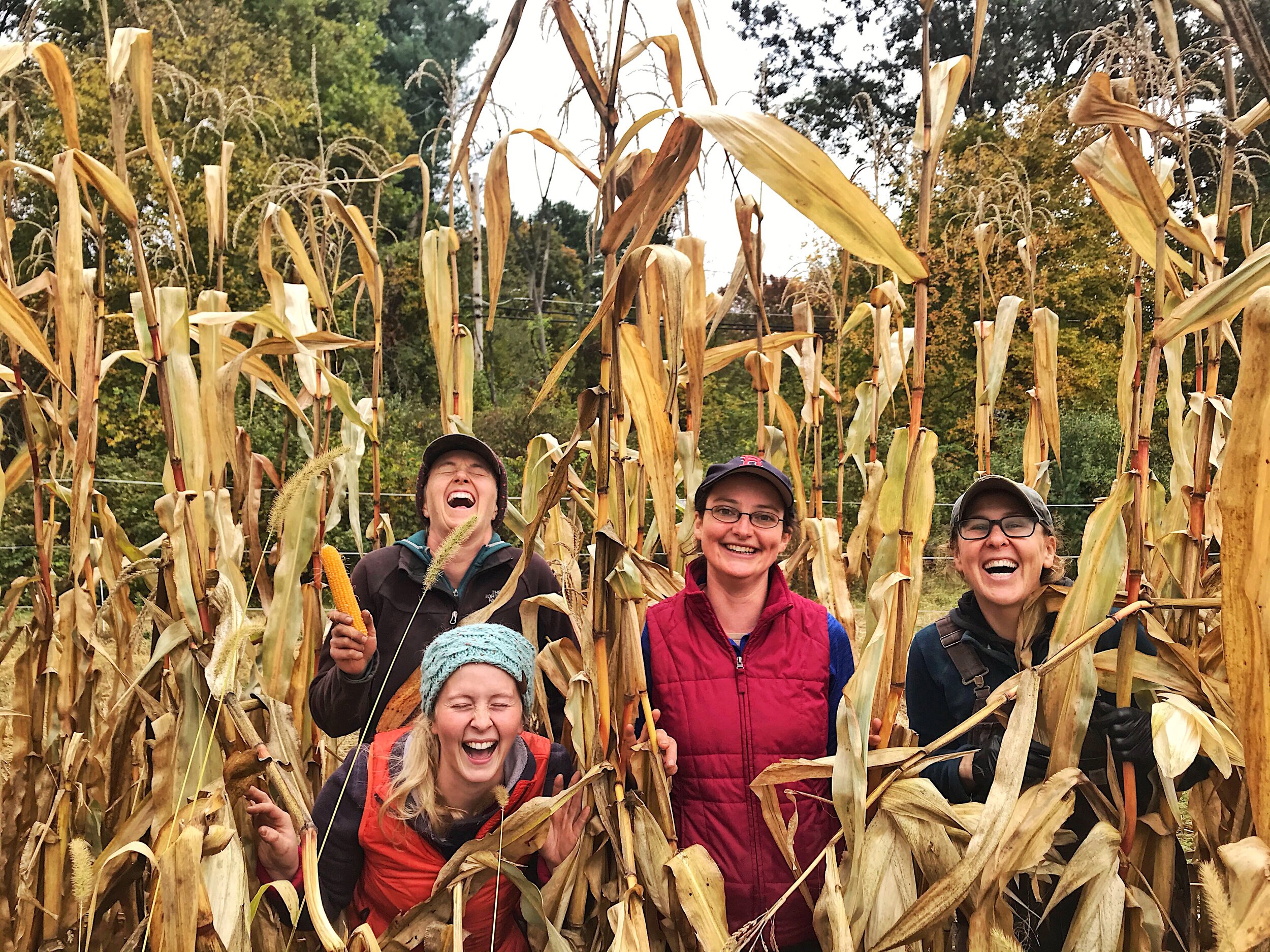 The weather has certainly taken a turn towards winter in the past week! We still have lots to get done in the field and the unheated barn though, so strategic layering is key to maintaining crew morale. We almost always wear our warmest thermal layers topped off with rain pants (whether it’s raining or not). While our thick fisherman-style rain pants definitely restrict movement, they do provide wind protection and an extra barrier between our knees and the cold, wet ground. We also usually wear thin gloves with disposable nitrile gloves on top to keep our hands dry and warm. It’s a tricky balance between having your gloves thin enough so that we still have manual dexterity, but still thick enough that they don’t go numb in the cold!