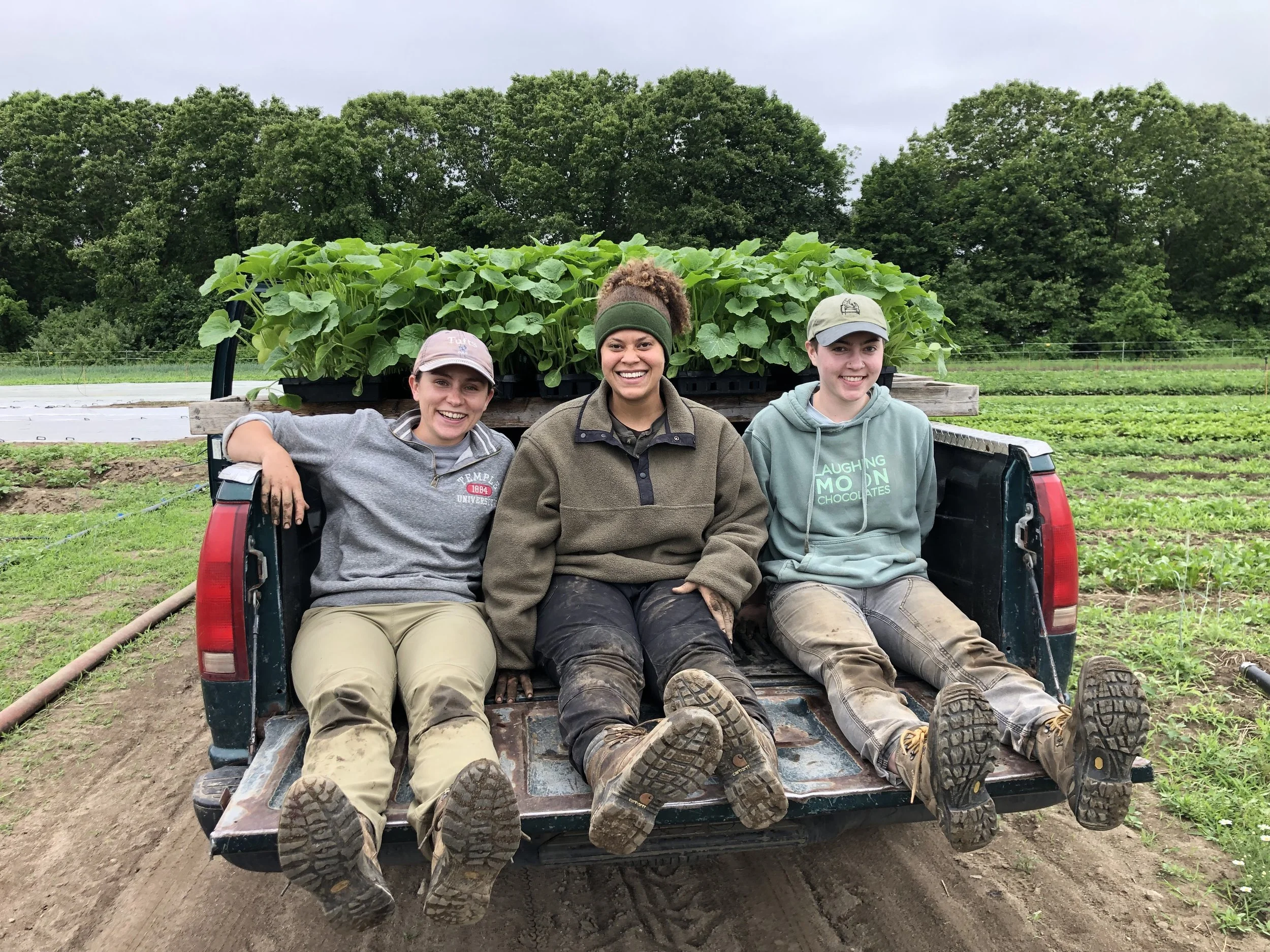 We are happy to report that in the weeds vs. farmers competition the current score is at least a tie if not slightly in our favor! Last week we spent as much time as possible weeding and laying landscape fabric to make sure that our plants have room to grow. We also staked and trellised our field slicing and cherry tomatoes, as well as worked on pruning and trellising our sweet peppers in a high tunnel. As usual we worked on picking Colorado Potato Beetles off of our eggplant plants. We hope that was our last round of picking before the plants take off and outgrow their damage. This week we will be focusing our non-harvest time on fall plantings including seeding fall carrots and beets, planting Brussels sprouts and preparing the field for fall cabbage and kale. All that planting will require another deer fence on our last field across the street, as well as getting some irrigation set up (and hopefully some rain too!).