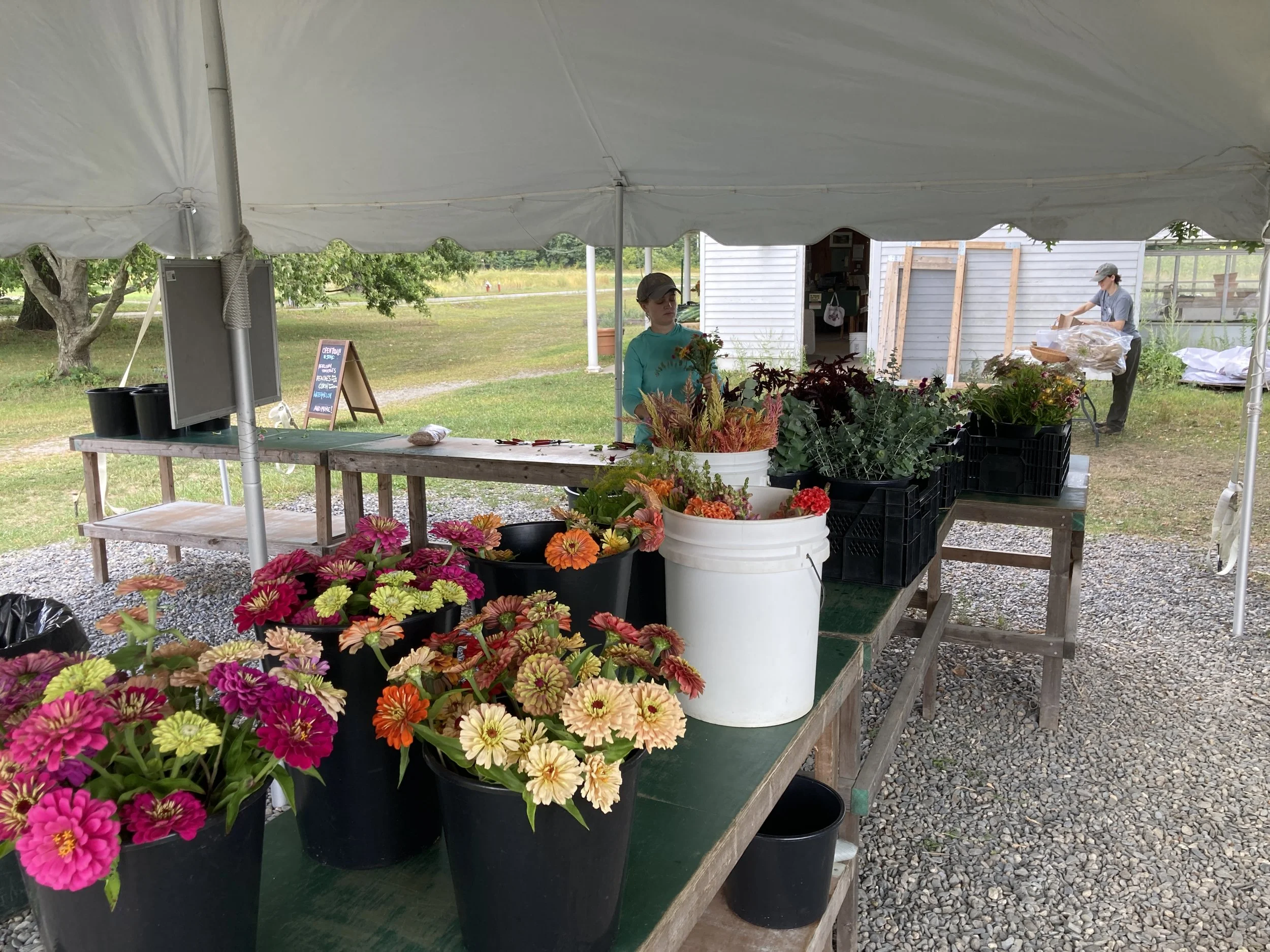 The flower field is open to both PYO Flower CSA members and the general public for picking by the jar. Please check in at the farm stand before picking. Flowers available for picking this week include: zinnias, snapdragons, gomphrena, ageratum, celosia, ammi, rudbeckia, verbena, amaranth, cosmos, decorative grasses, decorative basil and strawflower. There are also some sunflowers starting to bloom in the PYO Flower field!